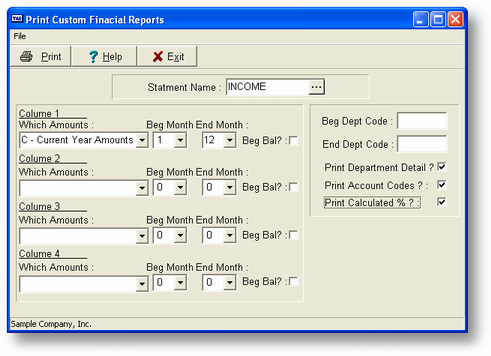 Once you have chosen a report format, the operation of this program is identical to that of GL-G, Print Financial Statements. Please refer to that section if you need more information.